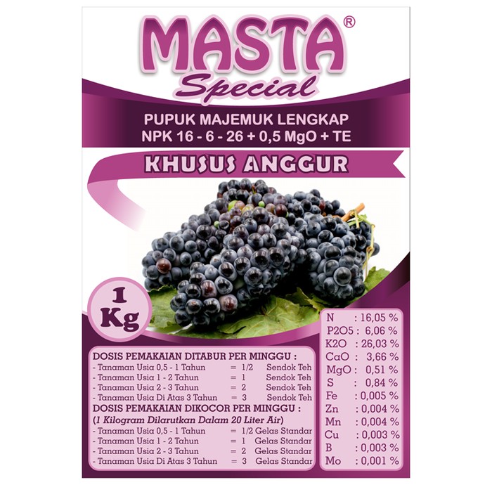 Pupuk Masta Khusus Anggur Npk 16 6 26 0 5 Mgo Te Kemasan 1